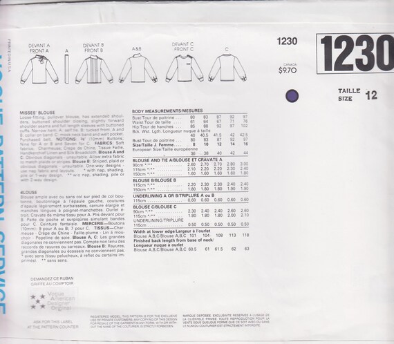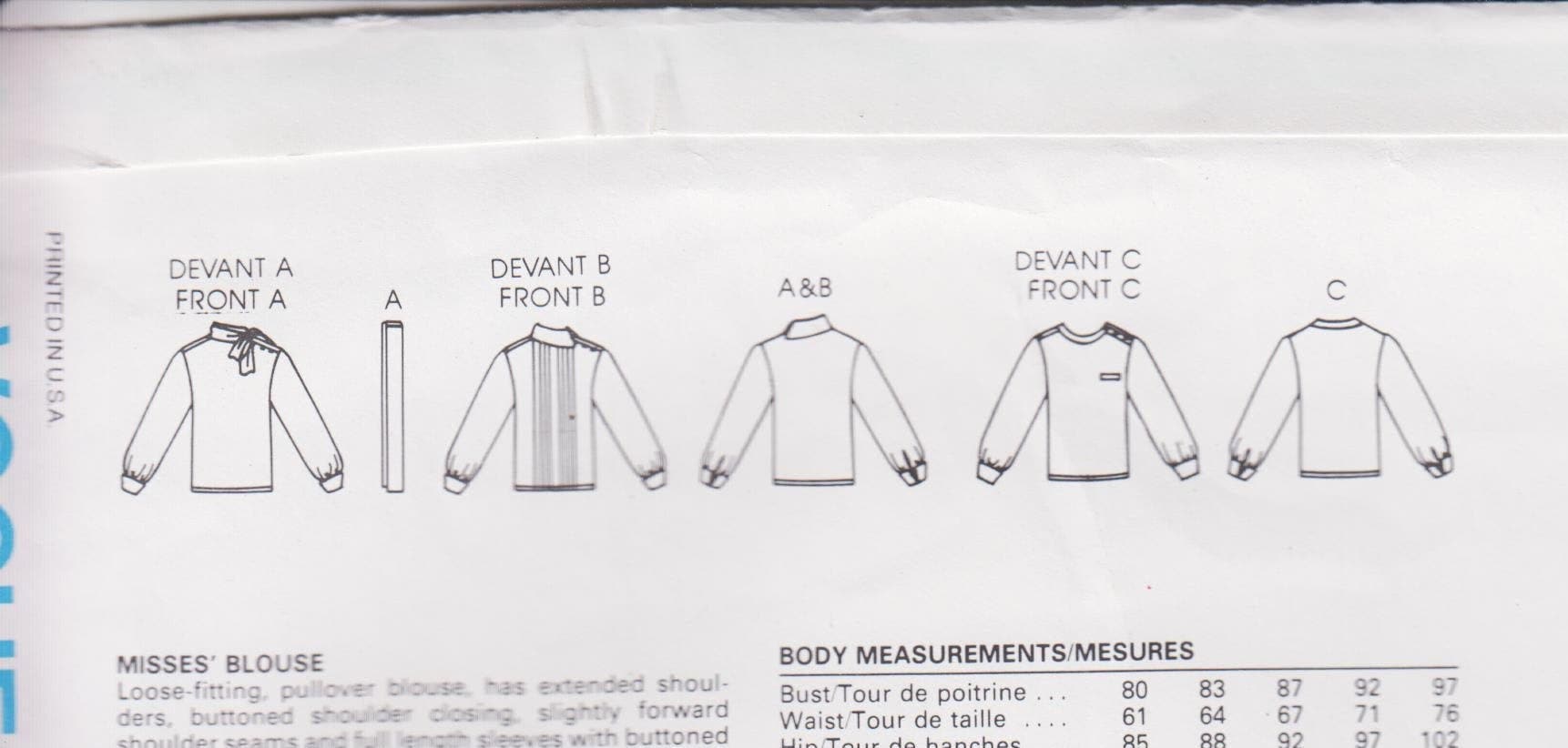1980s Vintage Vogue Sewing Pattern B34 36 38 Tops 1713 In 3 Sizes The Vintage Pattern Shop